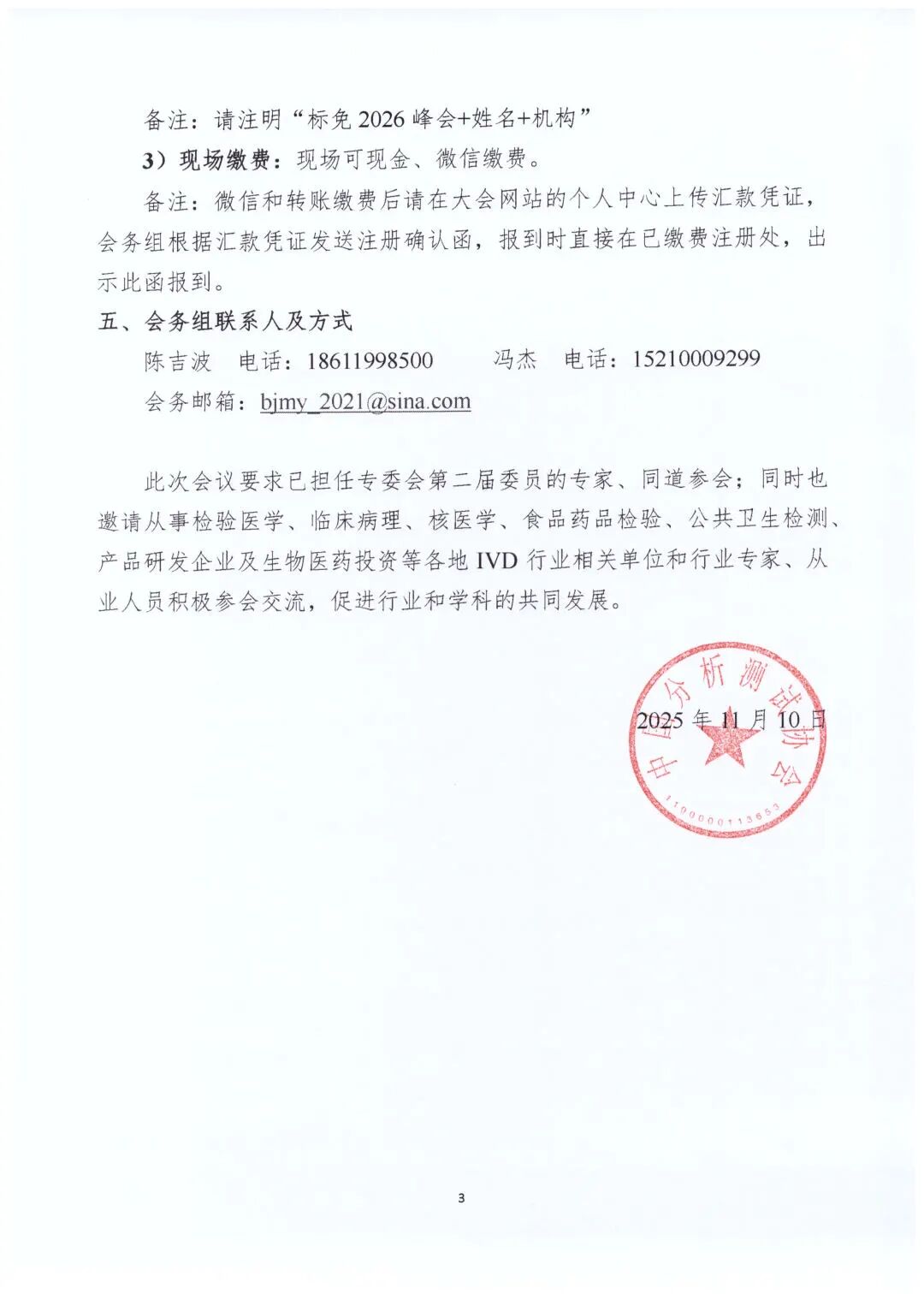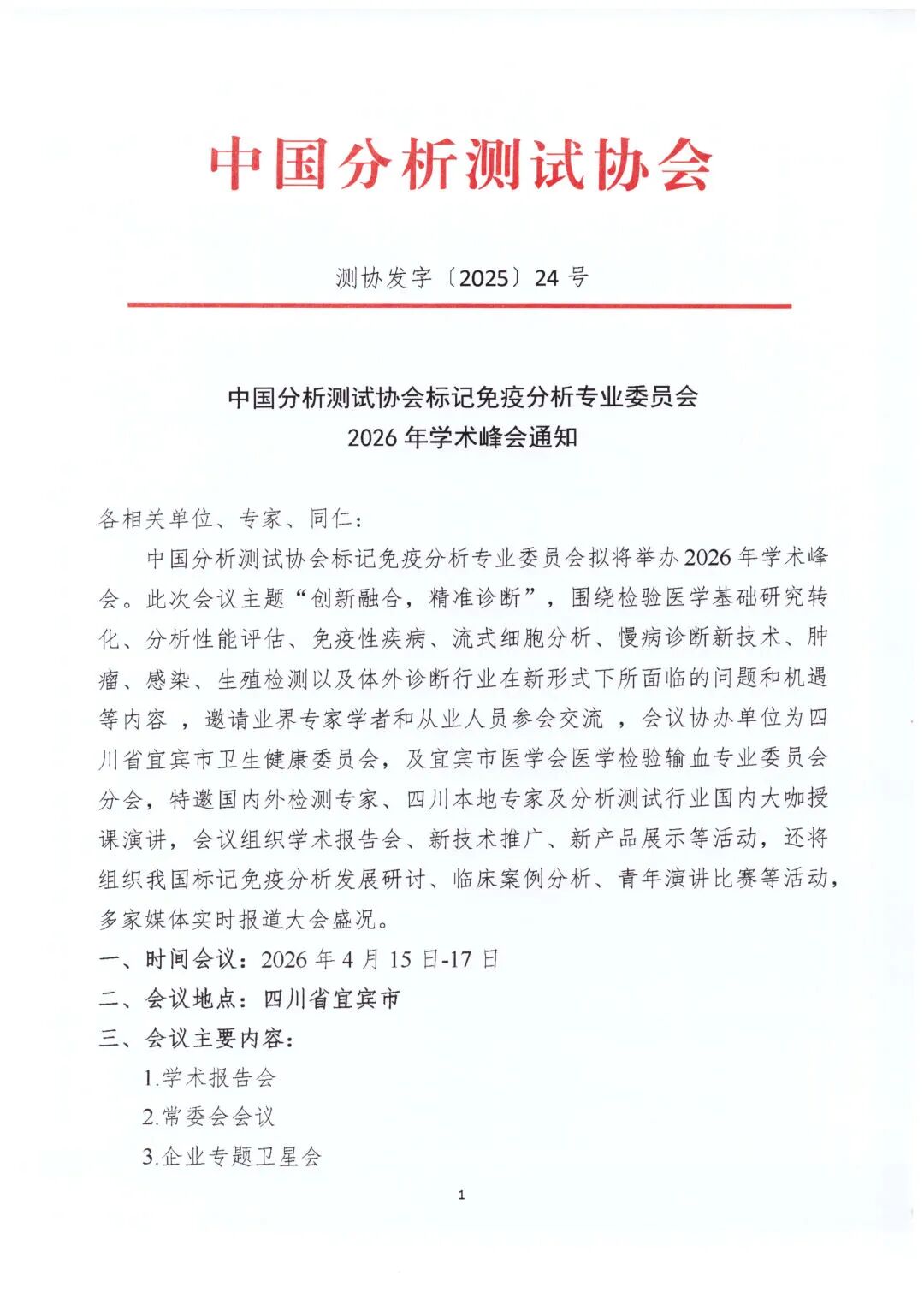 中国分析测试协会标记免疫分析专业委员会2026年学术峰会通知