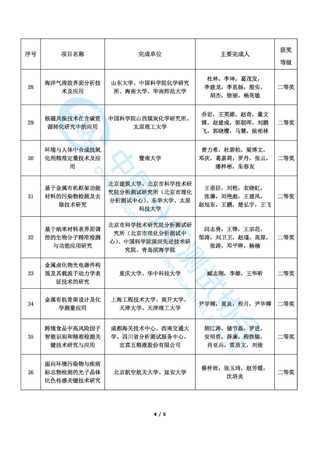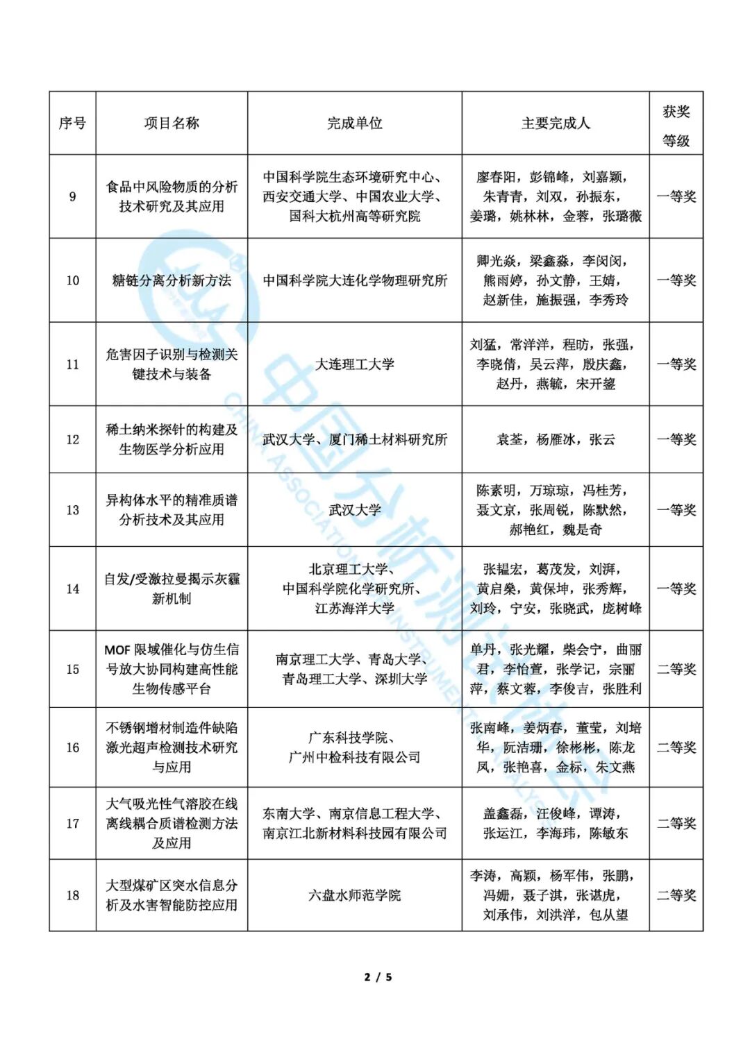 中国分析测试协会分析测试科学奖2025年度获奖名单